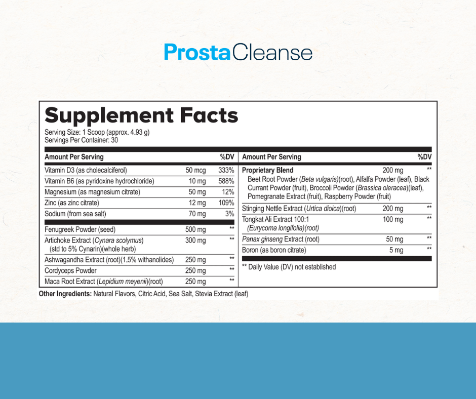 Prostacleanse ingredients are shown below: